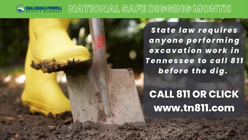 April is National Safe Digging Month. This month serves as a reminder to call 811 at least 72 hours before digging regardless of the depth or familiarity of the property. Calling 811 before you dig can help prevent injuries, property damage and inconvenient utility outages!