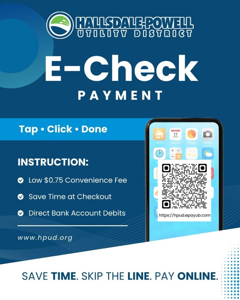 Paying your water bill just got even easier. With E-Check, you can securely transfer funds directly from your checking account in just a few clicks. Once your bank information is saved in your wallet, future payments are quick and convenient.