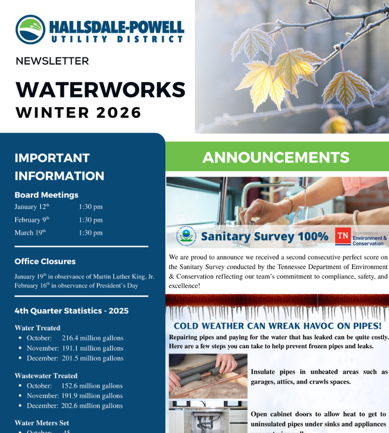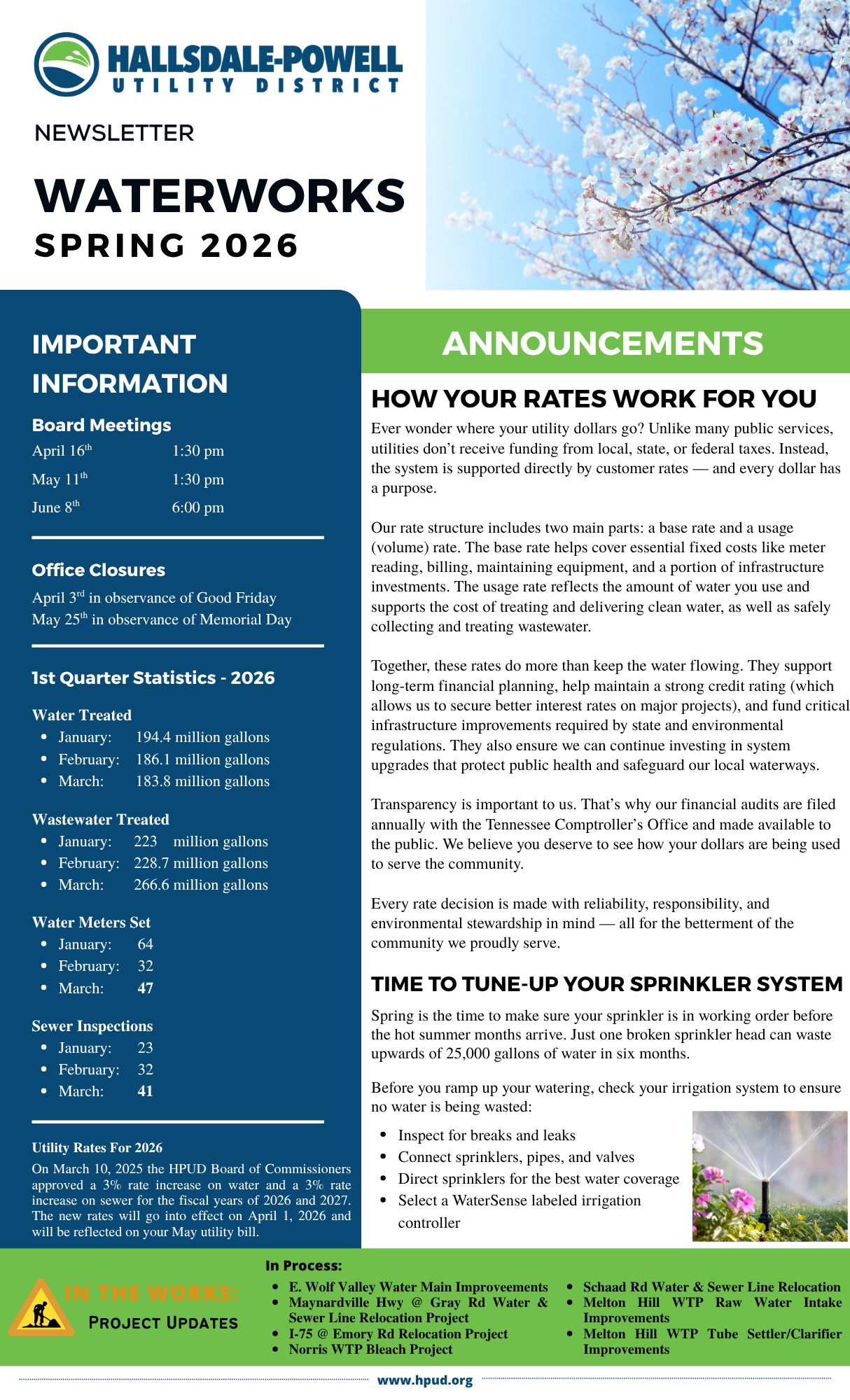 WaterWorks is our quarterly newsletter developed specifically for the customers of the district. The information provided in this publication includes projects that we are doing, both in the the field and with the community.